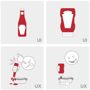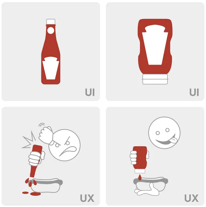 UI (User Interface) is what they see and touch — buttons, colors, layout, flow.